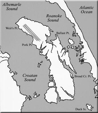 ROANOKE ISLAND, SHOWING THE PROBABLE LOCATION OF THE FREEDMEN'S COLONY